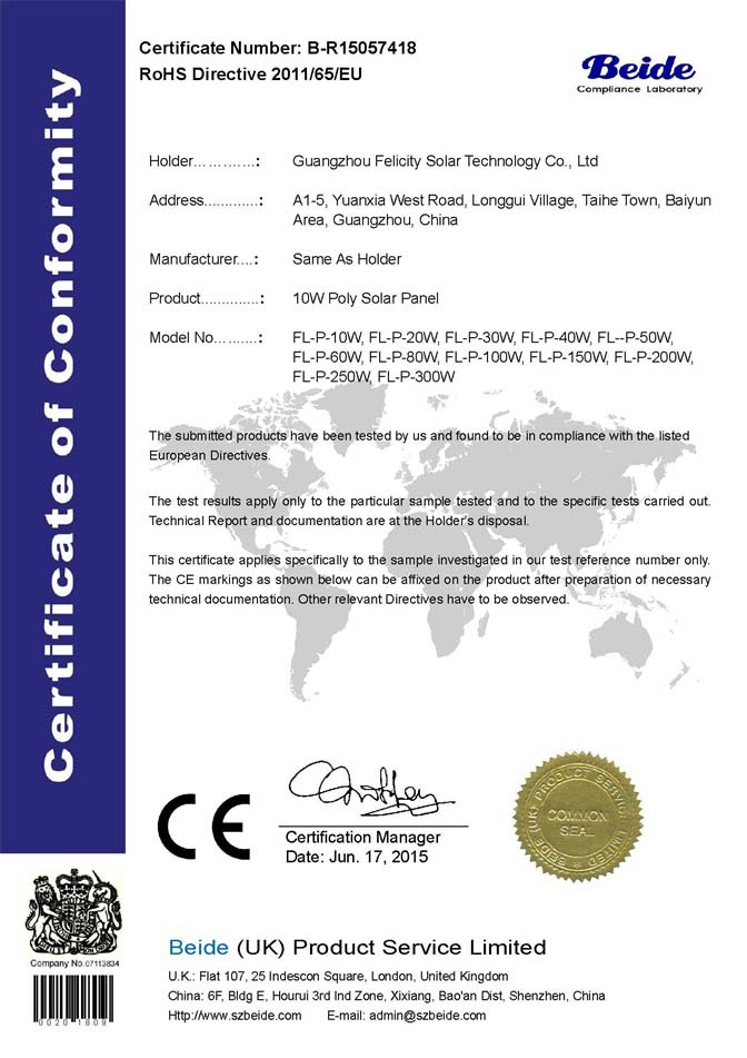 Сертификат 7418 ROHS для солнечной полимерной панели 2020-04-22